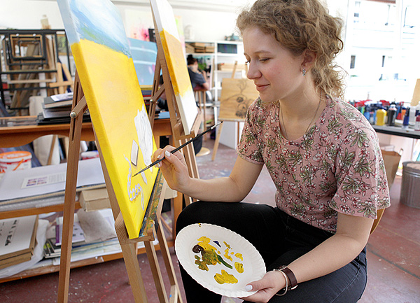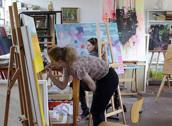![]() Die Teilnehmerinnen werden von Klaus Pfeiffer fotografiert. ![]() Russische und deutsche Studentinnen bei der Arbeit. Unten sind erste Studien aus dem Workshop Malerei zu sehen. ![]() Elena Akova ![]() Natalja Wassiliewa ![]() Jenny Körner ![]() Natalia Enokiants ![]() Sandra Klare |
